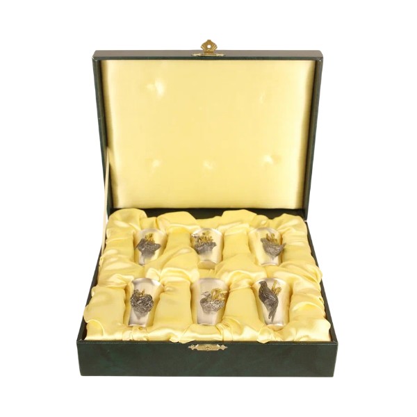 Рюмка "Близнецы" нефрит, серебро, позолота